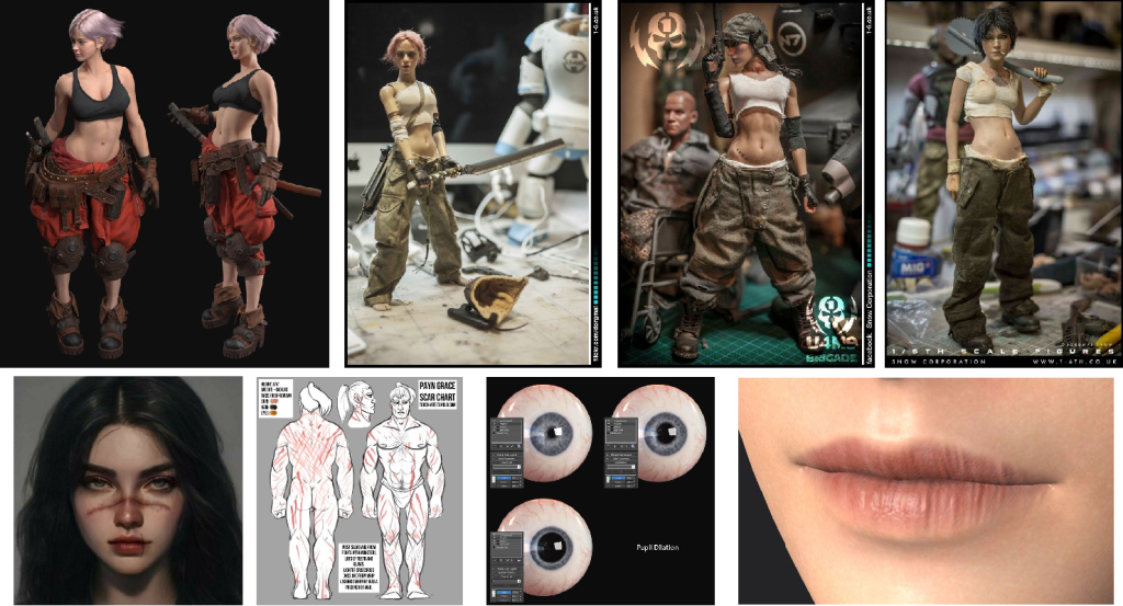 First of all, there are still a lot of references, because it is a dilapidated scene, I position the character as a female survival and battle in the wild. I also found a lot of references in clothing, color matching and scar design to prepare for the process of drawing materials.
