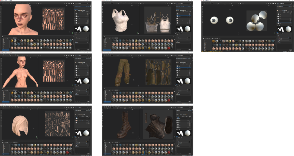 I imported them into Substance Painter for drawing the material. I learned a lot of references for that.